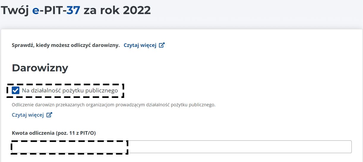 6. W sekcji Darowizny powinieneś zobaczyć swoją kwotę odliczenia.