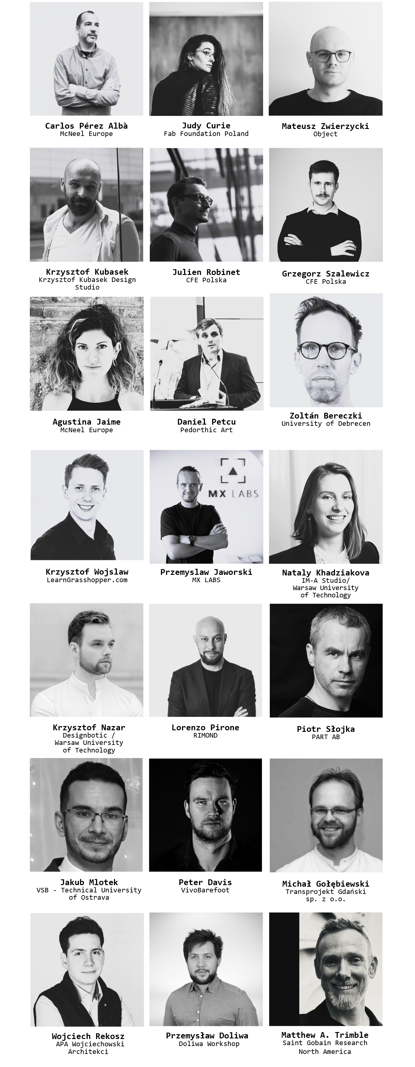 David Rutten (McNeel), Michael Drobnik (Herzog & de Meuron), Chritoph Wabel (ETH Zurich), Angelos Chronis (Austrian Institute of Technology), Detlef Muller (adidas AG), Tom van Mele (Compas), Ursula Frick (Blumer-Lehmann AG) and many other distinguished academics and professionals, complete list of speakers available: https://events.mcneel.eu/