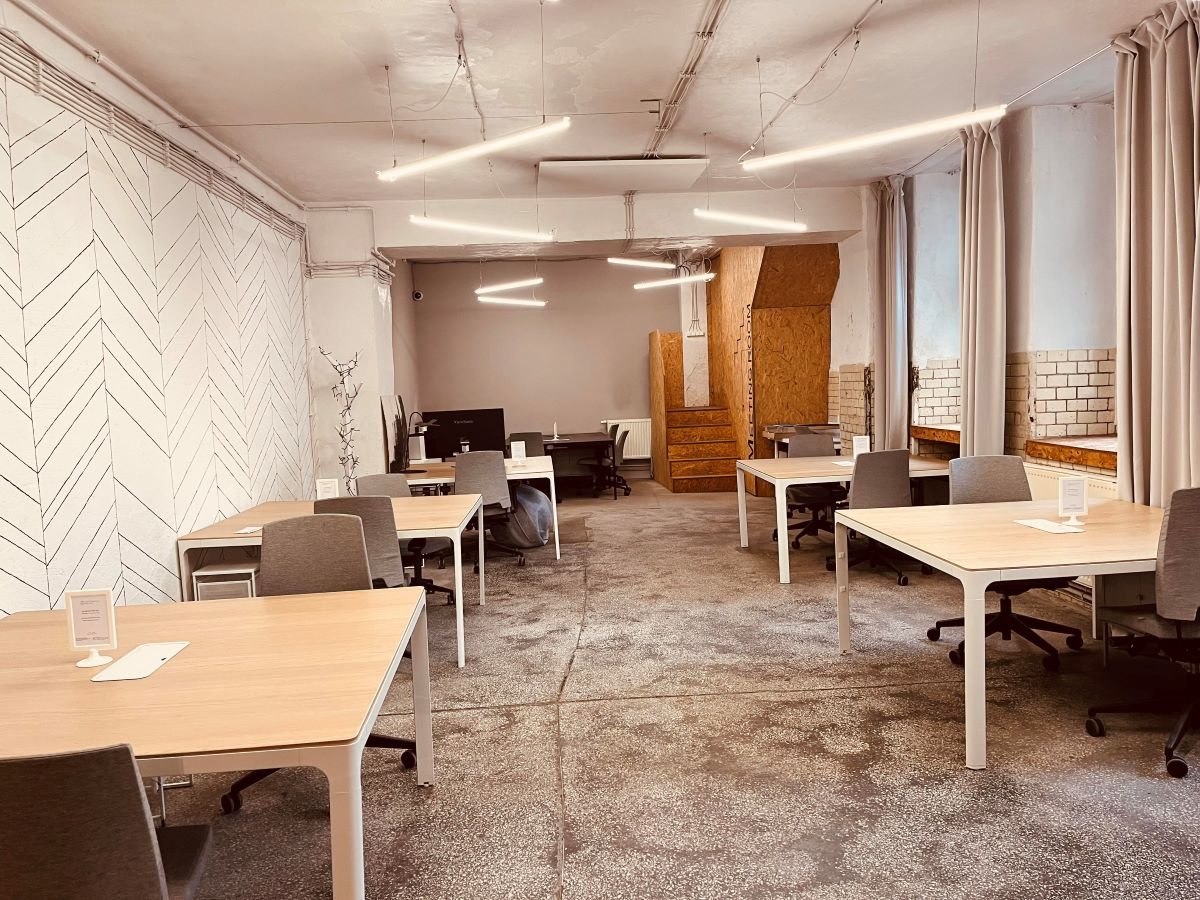 - area: an individual dedicated workspace in the large co-making area including large comfortable desk 140x70cm, chair and a desk cupboard